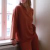 Julie is 176 and wearing size M in both top and pants.